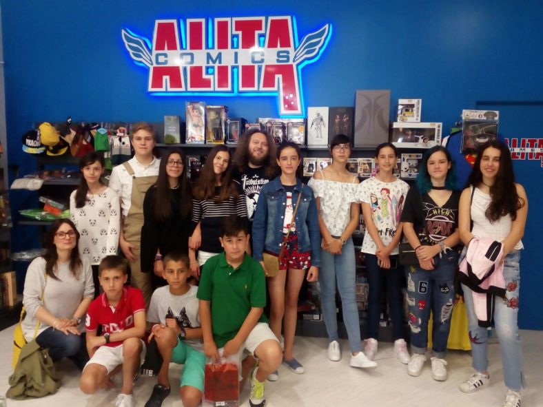 Foto de grupo en Alita Cómics con Toño