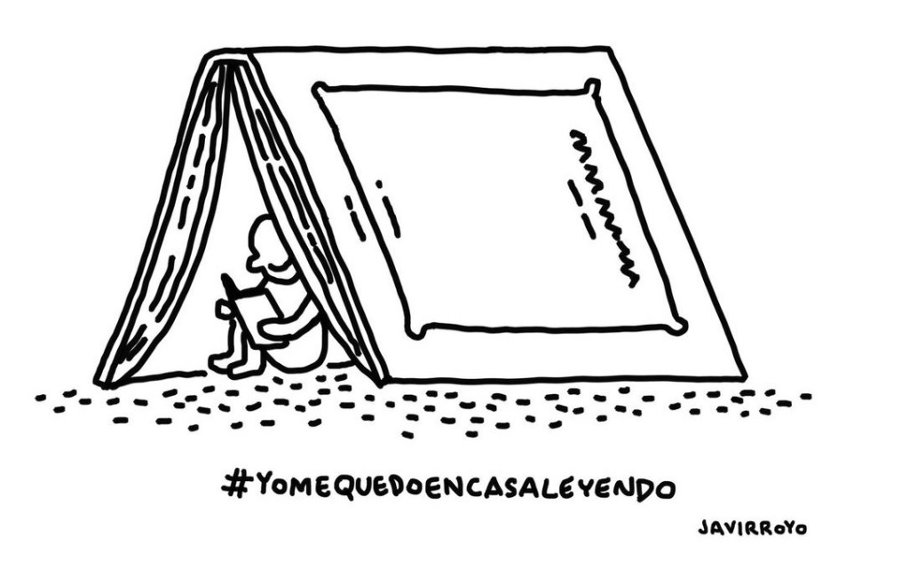 Neste caso non lendo libros completos. Non temos acceso a eles na Biblioteca en papel nin o costume de ler grandes textos en dixital. Nin a concentración necesaria nestes tempos de pandemia… Pero sí lendo pequenos fragmentos, contos, relatos que imos atopando de xeito legal na rede (ademáis dalgunhas páxinas de cómic: que sería de nós sen Paco Roca en pixama!). Grazas a tantas editoras pola súa xenerosidade nestes tempos en que no todas as persoas lectoras teñen bibliotecas persoais ás que botarlle a man. Polo motivo que sexa. Tamén temos en conta as bibliotecas dixitais, coma GaliciaLe ou ebibliodacoruna aínda que case todas añoramos o papel e as apertas.