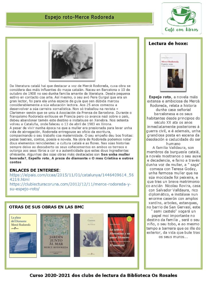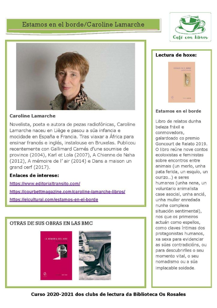 Esta semana comezamos un curso novo nos clubs de lectura da Biblioteca Os Rosales. Café con libros dos luns comeza o seu quinto curso e as compañeiras dos martes, as nosas veteranas, comezan xa a séptima andaina xuntas, e as que quedan por vir!