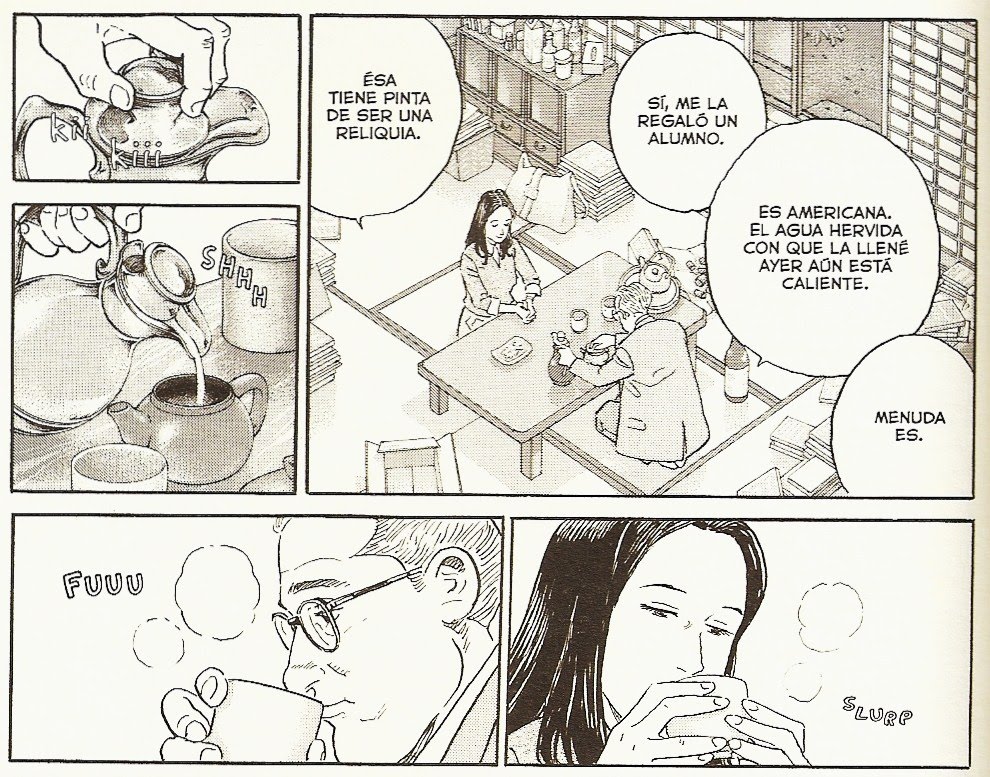 Su delicado y detallado dibujo, hace que saboreemos la comida y que disfrutemos de maravillosos paisajes, además de reflejar a la perfección el ritmo reposado de la relación entre un maduro profesor y su alumna. Gesto, miradas…